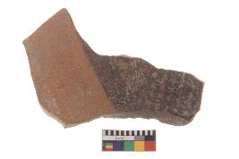 | Description / विवरण | Specimen of black on red ware with black decorative Lattice leaf geometric painting. |
