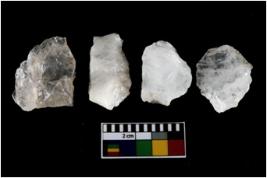 | Description / विवरण | There are n-4 of intact utilized flakes made up of Quartz. Some of them have bulge of percussion and some are flat flakes. |