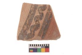 | Description / विवरण | Specimen of black on red ware with black decorative Wavy line between parallel lines geometric painting. |