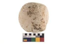 | Description / विवरण | A partially broken specimen of roughly round shaped hammer stone with battered periphery along with the circumference. |