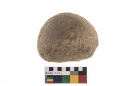 | Description / विवरण | A partially broken specimen of roughly round shaped hammer stone with battered periphery along with the circumference. |