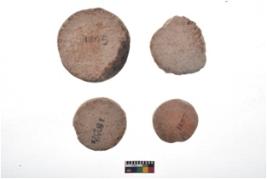 | Description / विवरण | There are n-4 plain pottery discs without perforation. Their colour varies from dark to light red. These discs have eroded edges. |