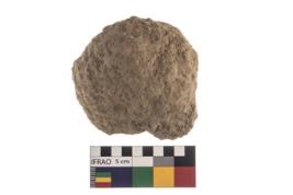 | Description / विवरण | A partially broken specimen of roughly round shaped hammer stone with battered periphery along with the circumference. |