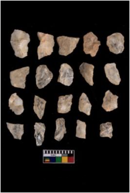 | Description / विवरण | There are n-20 of intact flake cores made up of Quartz. Some of them have bulge of percussion and some are flat flakes. |
