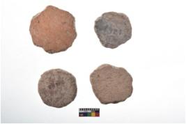 | Description / विवरण | There are n-4 plain pottery discs without perforation. Their colour varies from dark to light red. These discs have eroded edges. |