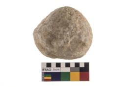 | Description / विवरण | A partially broken specimen of roughly round shaped hammer stone with battered periphery along with the circumference. |