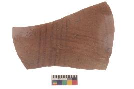 | Description / विवरण | Specimen of red ware with decorative geometric Linear Pattern painting. |