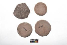 | Description / विवरण | There are n-4 plain pottery discs without perforation. Their colour varies from dark to light red. These discs have eroded edges. |