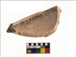 | Description / विवरण | A partially broken specimen of a terracotta lamp, triangular rim, thin walls. It is made of red ware, fine fabric, well-fired. |