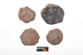 | Description / विवरण | There are n-4 plain pottery discs without perforation. Their colour varies from dark to light red. These discs have eroded edges. |