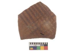 | Description / विवरण | Specimen of red ware with decorative geometric Linear Pattern painting. |