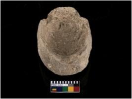 | Description / विवरण | A partially broken specimen of a grey ware terracotta miniature pot, circular on plan, thin walls, flat base and cylindrical in shape, with convex sides, out-turned rim and finger-pressed interior. It is made of fine fabric, well-fired. |