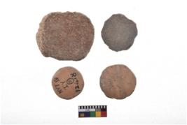 | Description / विवरण | There are n-4 plain pottery discs without perforation. Their colour varies from dark to light red. These discs have eroded edges. |