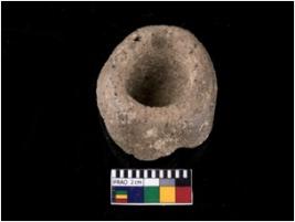 | Description / विवरण | A complete specimen of a grey ware terracotta toy pot, circular in shape, thick walls, cylindrical lump of clay with convex base and finger-pressed interior. It is made of fine fabric, well-fired. |