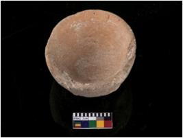| Description / विवरण | A partially broken specimen of a terracotta votive lamp, circular on plan, with thick circular rim, shallow walls and flat circular base with the fragment of a banded rim on which these small lamps were attached present here. It is made of red ware, fine fabric, well-fired. |