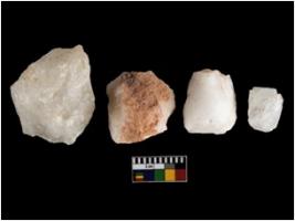 | Description / विवरण | There are n-4 of Cores. All are made of Quartz. All are fully fluted cores.2 with trace of crested ridge flake. |