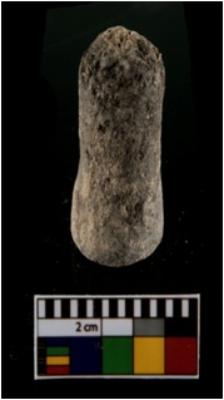 | Description / विवरण | A complete specimen of a red ware gamesman. It is cylindrical in shape with falring base and tapering body and slightly truncated at the end. It is burnt |