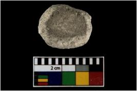 | Description / विवरण | A partially broken specimen of a terracotta gamesman. It is grey in colour. |