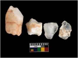 | Description / विवरण | There are n-4 of Cores. All are made of Quartz. All are fully fluted cores.2 with trace of crested ridge flake. |