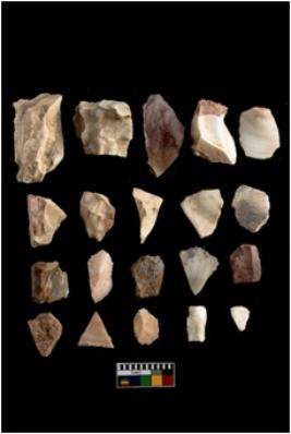 | Description / विवरण | There are n-20 of intact flake cores made up of Chert. Some of them have bulge of percussion and some are flat flakes. |