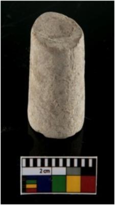 | Description / विवरण | A complete specimen of a grey ware gamesman object . It is cylindrical in shape with tapering body and slightly truncated end . It is having concavity at the apex. |