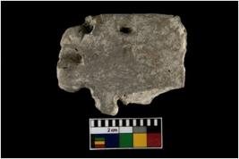 | Description / विवरण | A broken specimen of a terracotta cart base. It is rectangular in shape with perforations. |