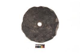 | Description / विवरण | A plain pottery disc with perforation.It is reddish in colour. It has eroded edges. |