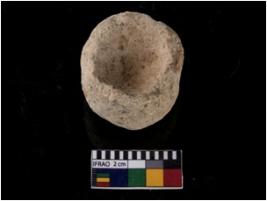| Description / विवरण | A partially broken specimen of a red ware terracotta toy pot, circular in shape, thick walls, cylindrical lump of clay with convex sides, round bottom, out-turned rim and finger-pressed interior. It is made of fine fabric, well-fired. |