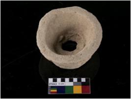 | Description / विवरण | A partially broken specimen of a terracotta lamp, circular on shape, with featureless flat rim, thick walls, hollow and partially broken circular base which shows a clear string mark where it has been cut from the potter s wheel. It is made of red ware, fine fabric, well-fired. |