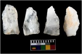 | Description / विवरण | There are n-4 of intact utilized flakes made up of Quartz. Some of them have bulge of percussion and some are flat flakes. |