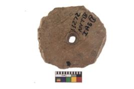 | Description / विवरण | A plain pottery disc with perforation.It is reddish in colour. It has eroded edges. |