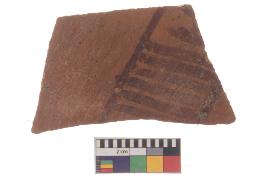 | Description / विवरण | Specimen of red ware with decorative geometric Linear Pattern painting. |