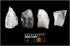 | Description / विवरण | There are n-4 of intact utilized flakes made up of Quartz. Some of them have bulge of percussion and some are flat flakes. |