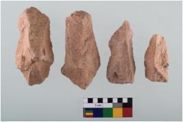 | Description / विवरण | Four worked utilised blades. Tapering at one end. |