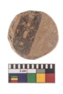 | Description / विवरण | A plain pottery disc with perforation.It is reddish in colour and decorated with black lines. It has eroded edges. |
