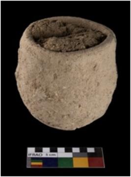 | Description / विवरण | A complete specimen of a red ware terracotta vessel, somewhat crucible-like with slightly sloping sides, bulbous at the belly, rimless, edges are thick. It is made of medium fabric, ill-fired. |