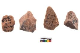 | Description / विवरण | Specimen of flake tools with prominent flaking marks. |