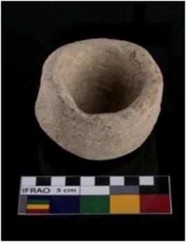 | Description / विवरण | A complete specimen of a grey ware terracotta toy pot, circular in shape, thin walls, cylindrical lump of clay with convex sides, thick-hallow-round bottom, thick rim and finger-pressed interior. It is made of fine fabric, well-fired. |