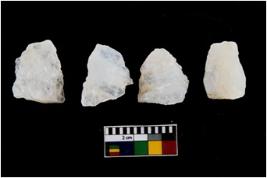 | Description / विवरण | There are n-4 of intact utilized flakes made up of Quartz. Some of them have bulge of percussion and some are flat flakes. |