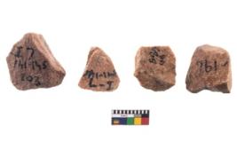 | Description / विवरण | Specimen of flake tools with prominent flaking marks. |