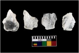 | Description / विवरण | There are n-4 of intact utilized flakes made up of Quartz. Some of them have bulge of percussion and some are flat flakes. |