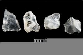 | Description / विवरण | There are n-4 of intact utilized flakes made up of Quartz. Some of them have bulge of percussion and some are flat flakes. |