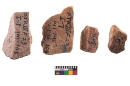 | Description / विवरण | Specimen of flake tools with prominent flaking marks. |