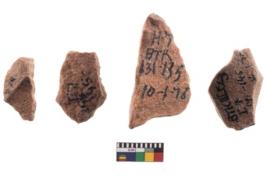 | Description / विवरण | Specimen of flake tools with prominent flaking marks. |