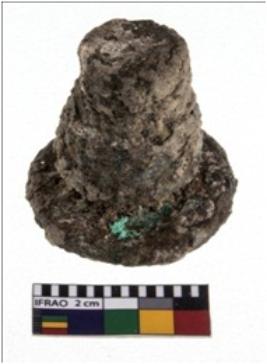 | Description / विवरण | A complete specimen of a medium size tubular shaped copper ear stud. It is having a disc and a tubular shaped rod placed on the disc. It is highly corroded and with rough surface. |