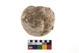 | Description / विवरण | A partially broken specimen of roughly round shaped hammer stone with battered periphery along with the circumference. |