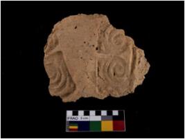 | Description / विवरण | A partially broken specimen of terracotta seal impression. It is almost globular, it bears the imprint of a square seal, with the circular design on it. It is having well formed handle at the top to provide a firm grip. It is made of fine fabric, smooth texture and well fired. |