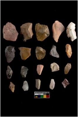 | Description / विवरण | There are n-20 of intact flake cores made up of Chert. Some of them have bulge of percussion and some are flat flakes. |