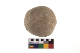| Description / विवरण | A partially broken specimen of roughly round shaped hammer stone with battered periphery along with the circumference. |