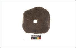 | Description / विवरण | A plain pottery disc with perforation.It is reddish in colour. It has eroded edges. |